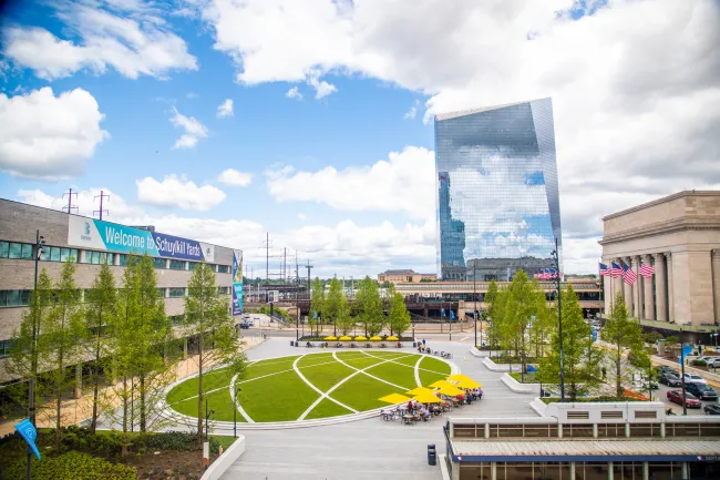 Cira Green: A one-of-a-kind urban park nestled next to FMC Tower at Cira Centre South, Cira Green is an elevated park in the sky—providing exceptional views of Center City, University City and the Schuylkill River. 500-person capacity.