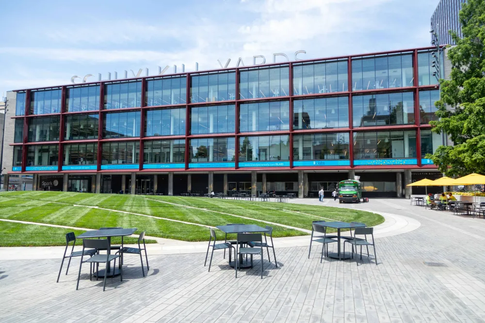 A Philadelphia landmark reimagined by Brandywine Realty Trust, the Bulletin Building is a premier life science hub and the headquarters of Spark Therapeutics, a pioneering gene therapy company. Once home to the Philadelphia Bulletin newspaper, the fully redeveloped building features high-performance glazing, exposed lab infrastructure, and advanced systems to support cutting-edge research. Overlooking Drexel Square, Gather Food Hall offers chef-driven concepts, bar service, and vibrant indoor-outdoor spaces at the heart of Schuylkill Yards.