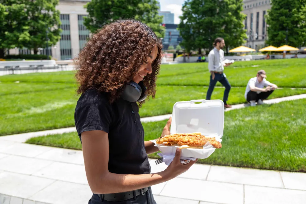 The park’s design, led by SHoP Architects and West 8, was inspired by William Penn’s vision of urban parks as “public rooms.” Crisscrossing granite pathways connect visitors to surrounding streets and destinations, creating a natural crossroads within the neighborhood. Surrounded by retail, dining, and community programming, including the Food Hall at the Bulletin Building, Drexel Square remains a central gathering place within the evolving district.
