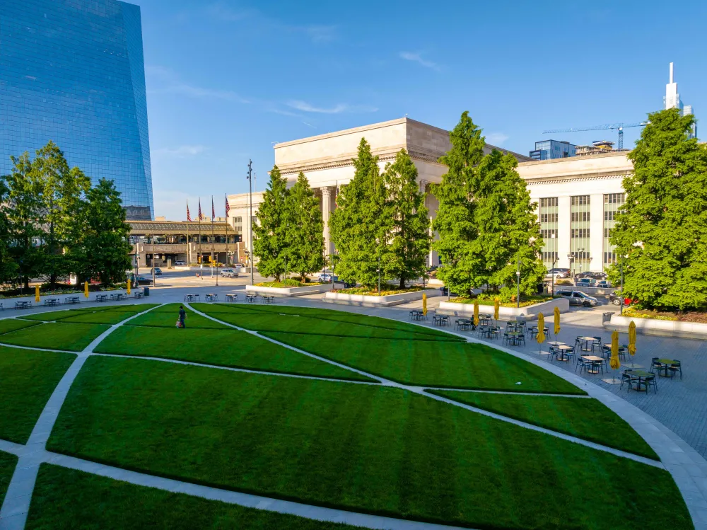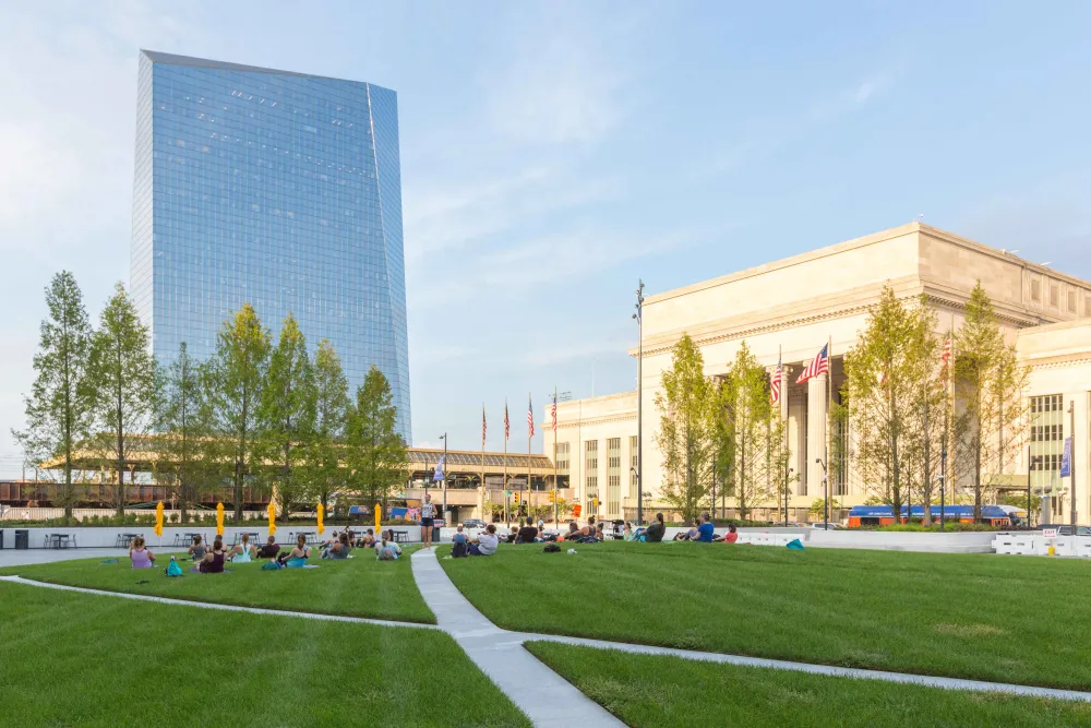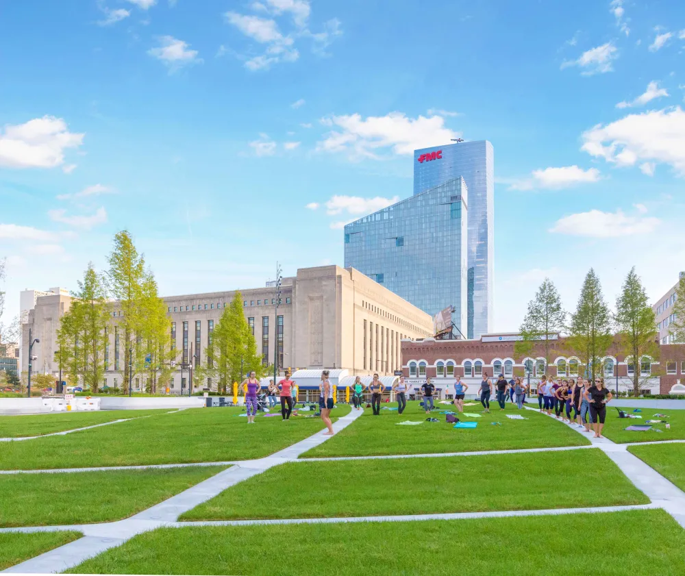 Located directly across from Amtrak’s 30th Street Station at the corner of 30th and Market Streets, Drexel Square is a 1.3-acre public park that serves as the gateway into Schuylkill Yards. With a steady rhythm of activity throughout the day — from morning yoga and casual meetings to afternoon lunch breaks and community events — Drexel Square offers flexible green space designed for everyday moments.